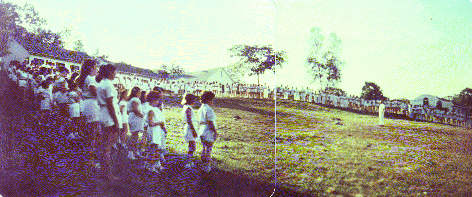 signaled the long white line of campers to wend their way across the hill and into the sparkling clean dining hall where a brief candle lighting ceremony was held and we sat down to a delicious meal of