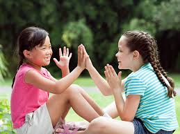 These were followed by the Blinking Game (if you blink first in a staring contest you lose) and the Laughing Game (same as above with laughing.) We segued into hand games where you perform a rhythmic series of clapping accompanied by words, like “Concentration,” in