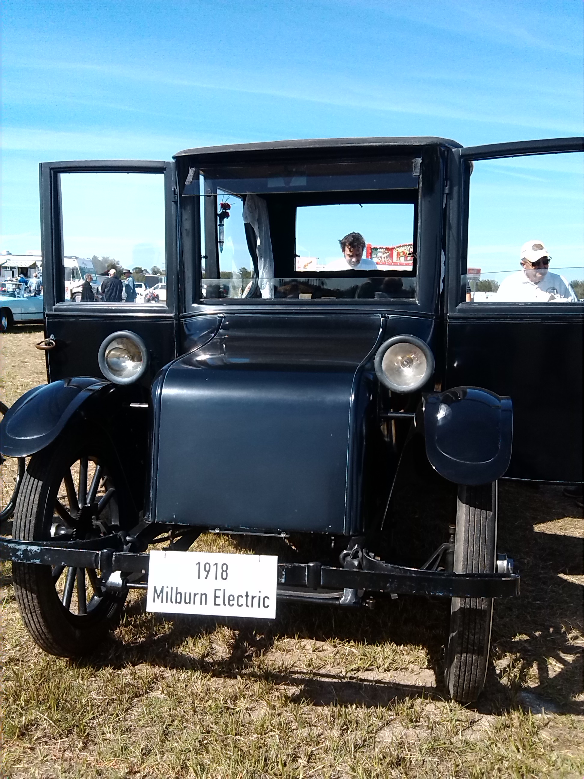 One day, we went to an outdoor show featuring 1500 antique cars where the oldest was 98 years old. I should look so good at that age! Nothing restored; just its original upholstery, paint job, etc. It resided in a museum for several decades and was then cared for and coddled. It’s a 1918 Milburn electric (!) car: