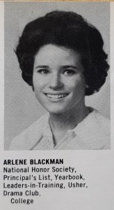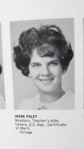 During intermission, I went up to her and asked if her name was Irene. “Yes,” she replied, “who are you?” “Arlene Blackman,” I said, using my maiden name, “Van Buren H.S. class of 1961!” She was shocked and surprised that I recognized her after 59 years but truth be told, she didn’t look all that different to me. You decide: Here she is in our high school yearbook, and as she looks today.